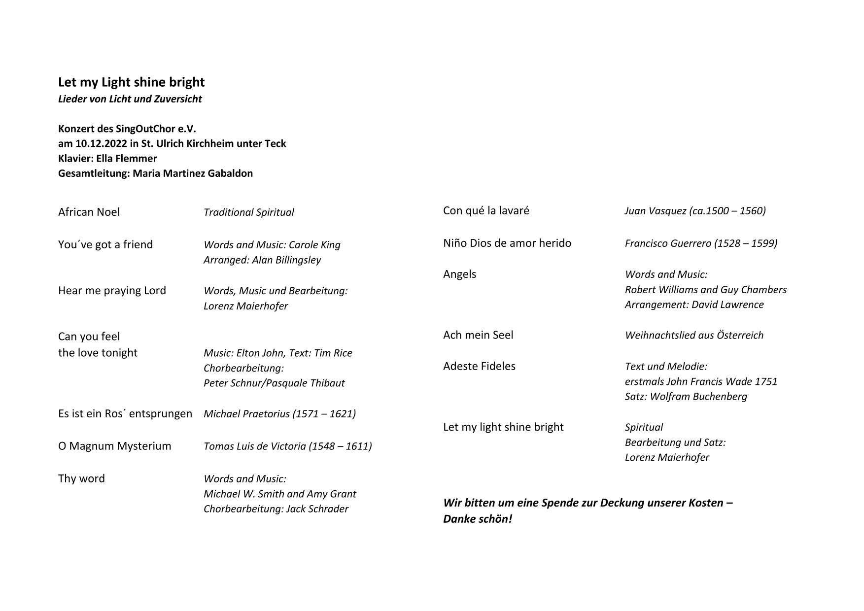 10.12.2022 Let my light shine bright - Lieder von Licht und Zuversicht