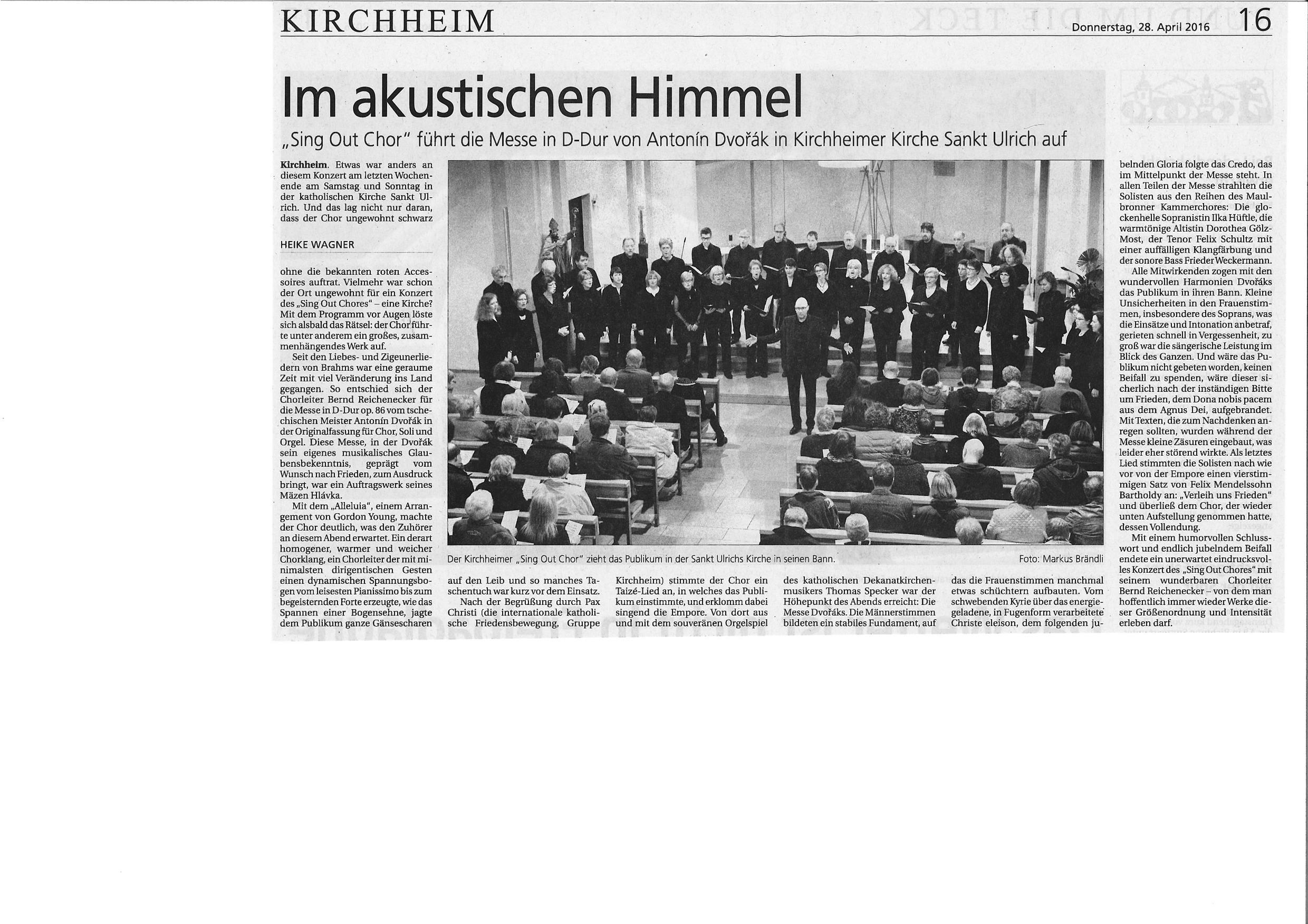 03.04.2016 Friedensklänge - Musik und Gedanken mit der Messe in D-Dur von Antonín Dvorák