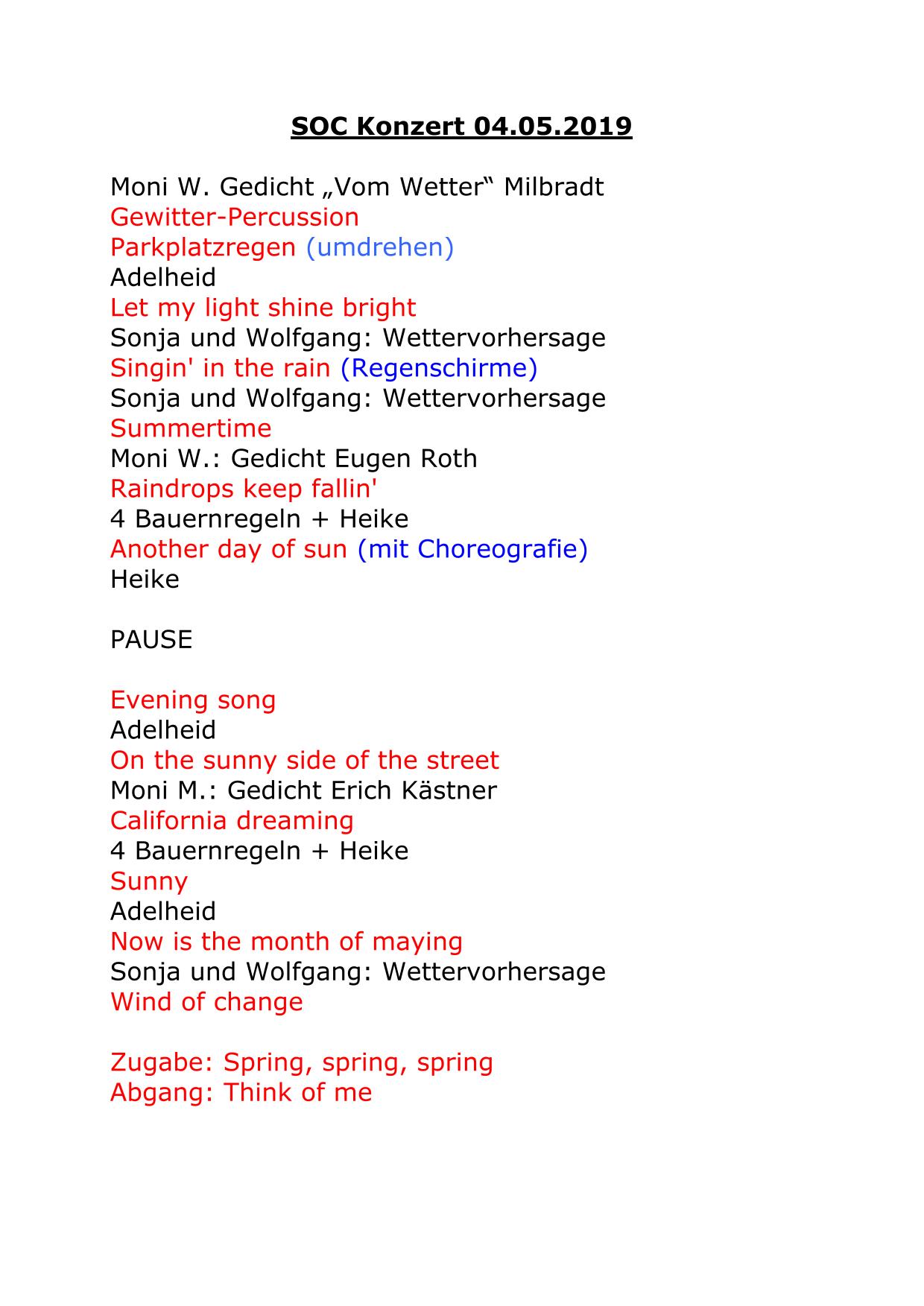 04.05.2019 Singin' in the rain - Lieder von heiter bis wolkig
