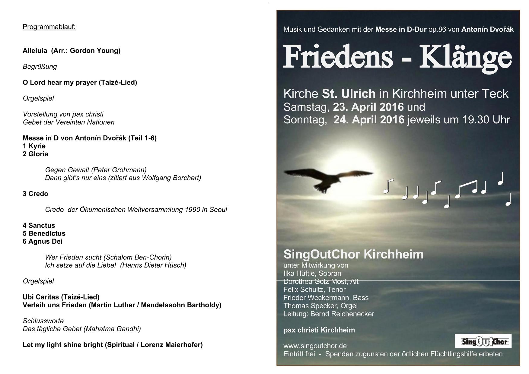 03.04.2016 Friedensklänge - Musik und Gedanken mit der Messe in D-Dur von Antonín Dvorák